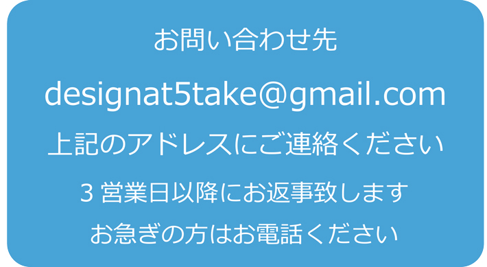 デザインアットファイブパソコン教室へのお問い合わせは、以下のお電話またはメールにてお願いいたします。